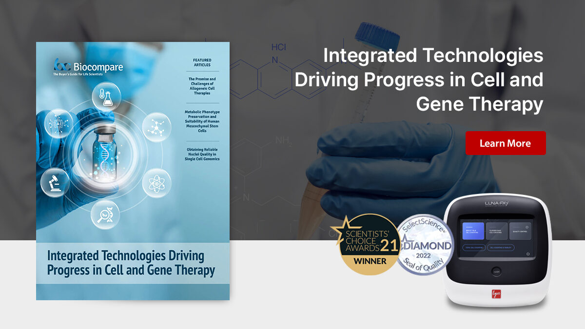The eBook, ‘Integrated Technologies Driving Progress in Cell and Gene Therapy,’ just released by Biocompare, provides a first-hand look at the latest technological advances driving cell and gene therapies today. Thanks to these advances, research labs are able to streamline and standardize production resulting in reduced costs and improved safety.